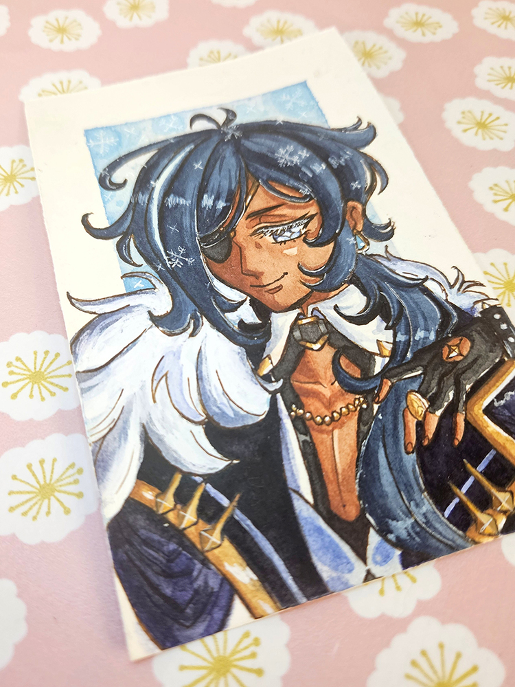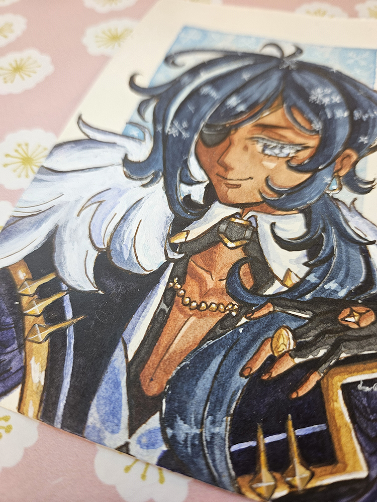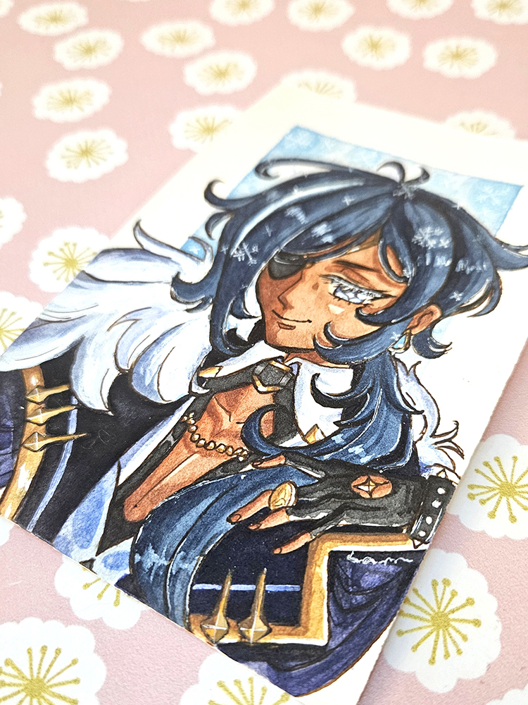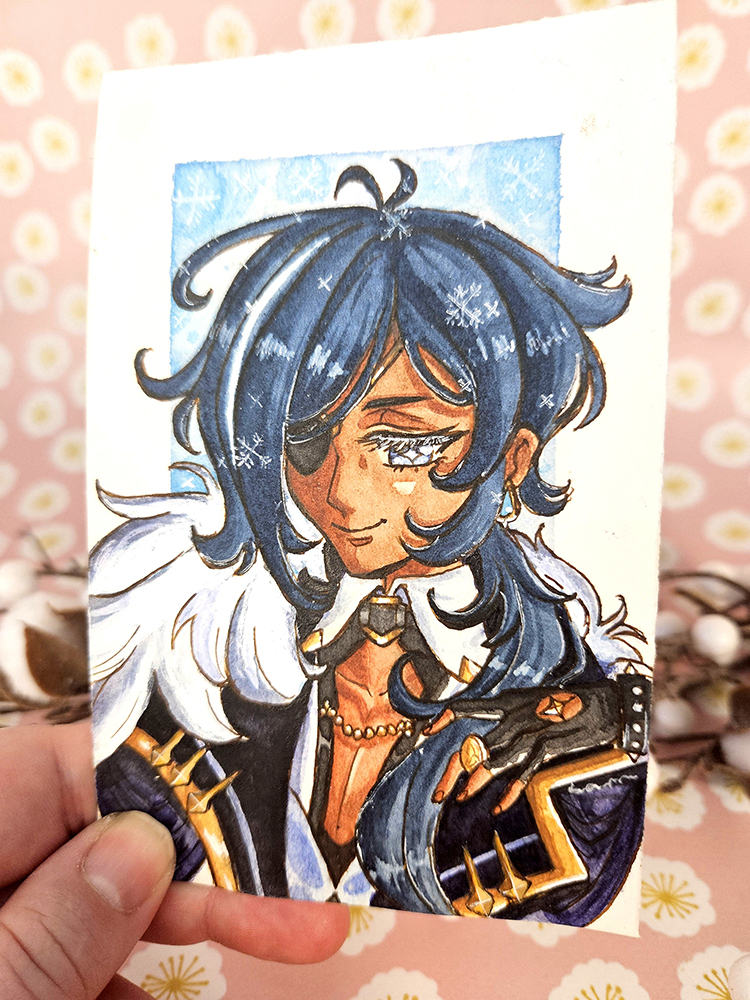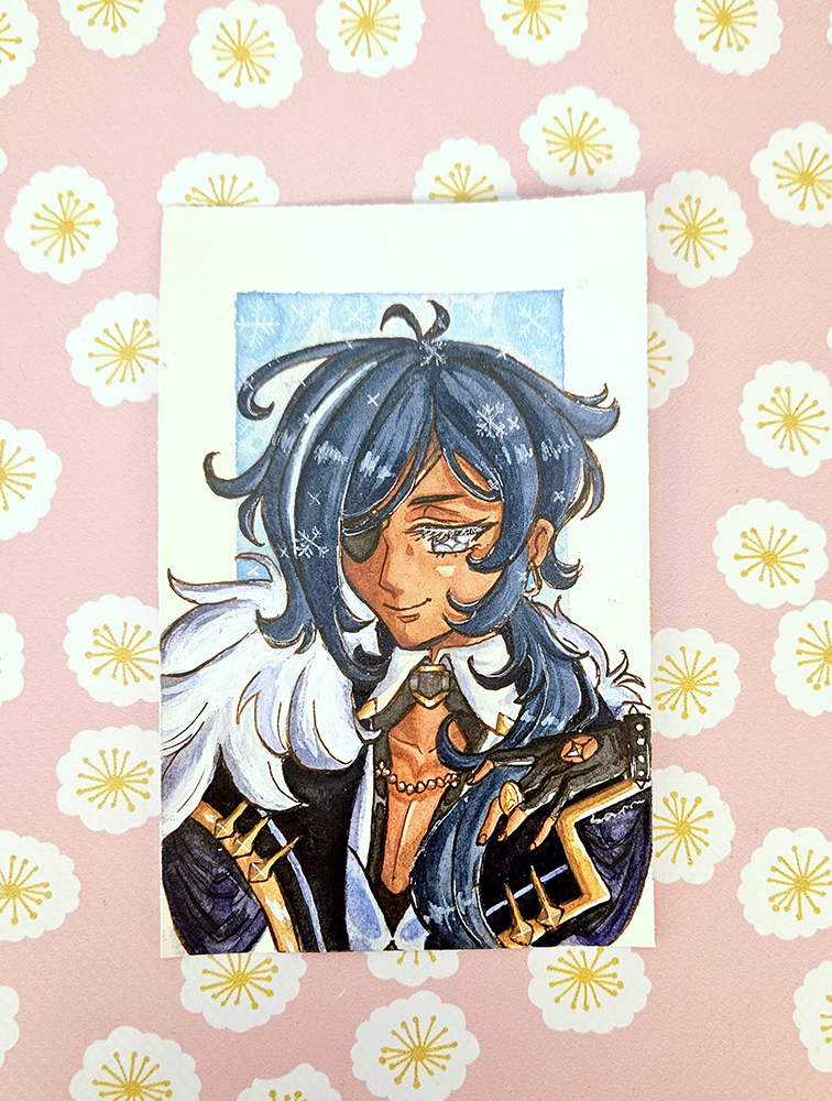 A watercolour mini illustration of Kaeya from Genshin Impact